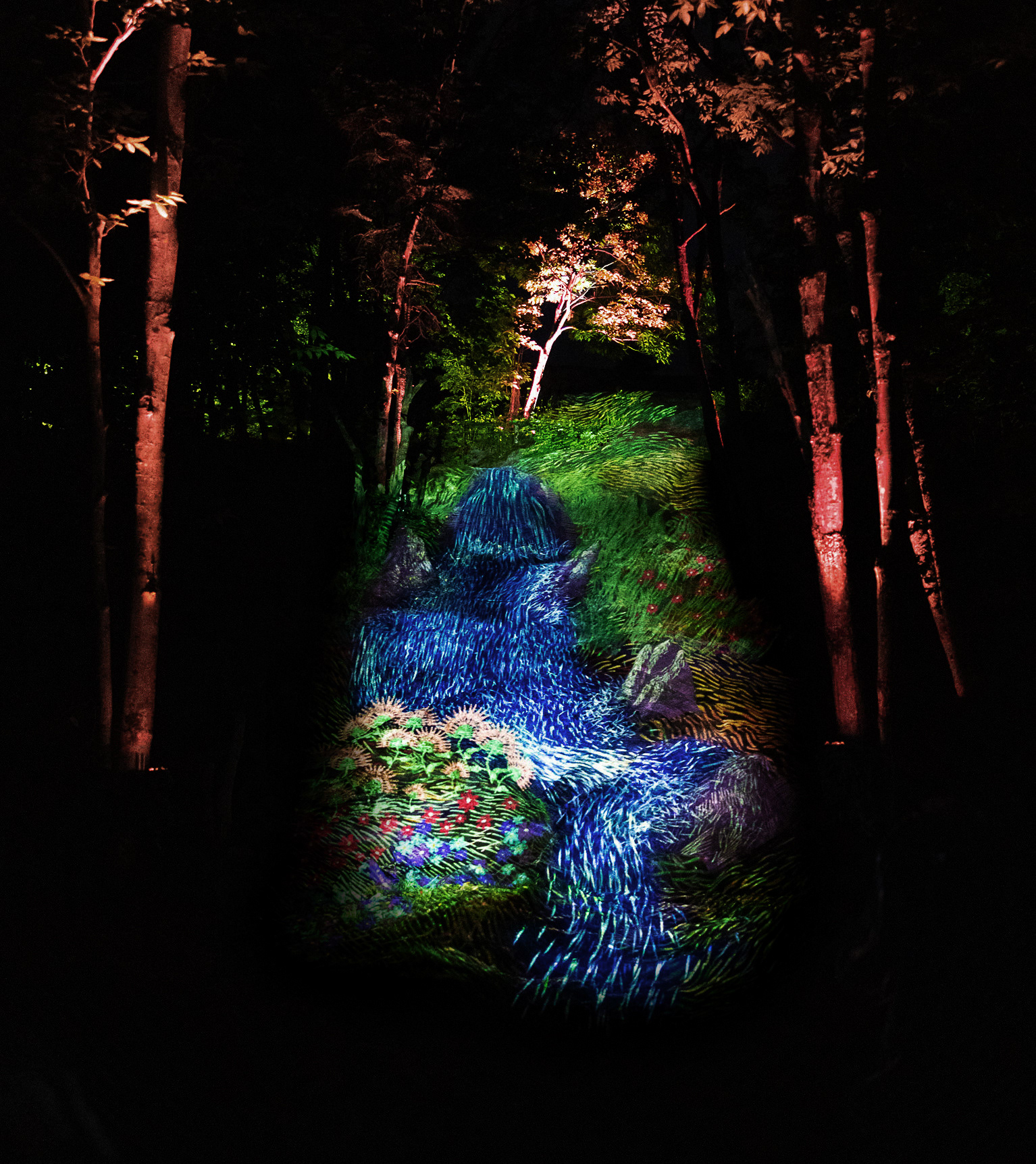 Création de séquences animées projetées sur une palissade et une façade rocheuse, et animation d'une séquence lumineuse insufflant la vie à un anneau LED de 8 mètres de diamètre.